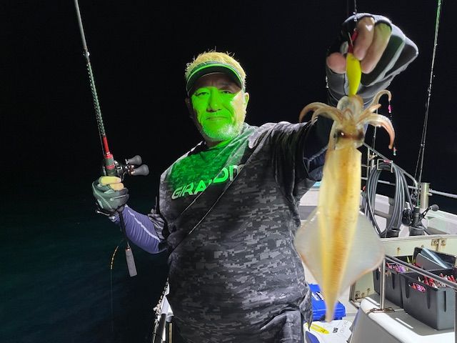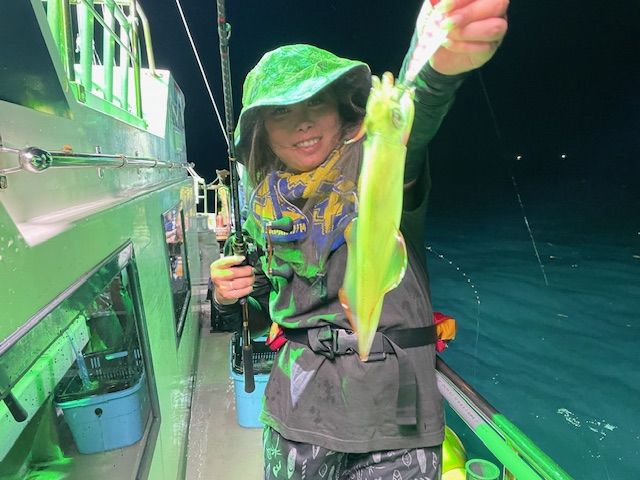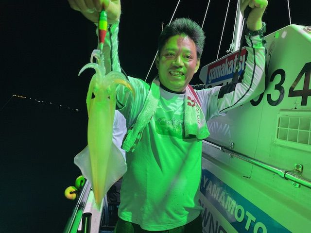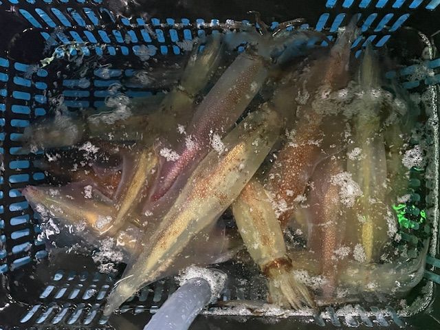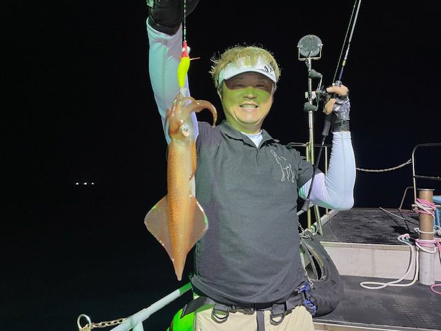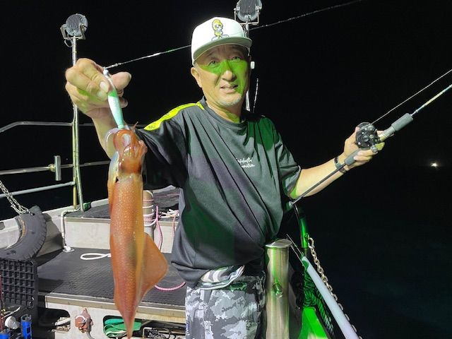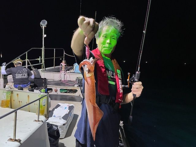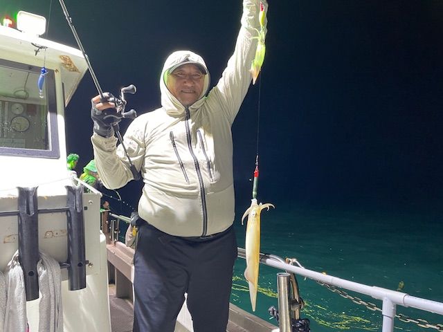 ケンサキイカ船中250杯、竿頭40杯。一人平均25杯の釣果。