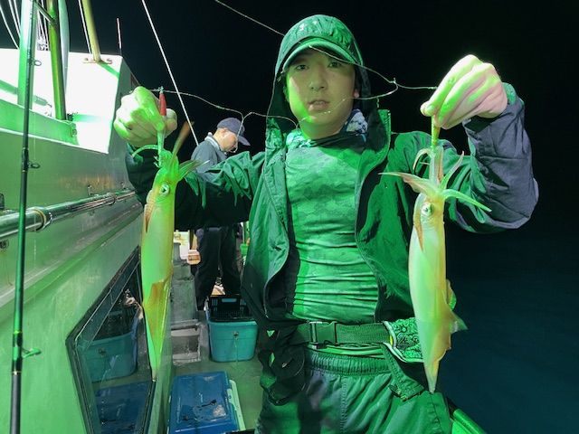 同船者との仕掛け絡みが多い日は、潮流の抵抗が小さいスッテ2本の仕掛けが良いです。