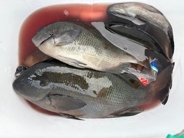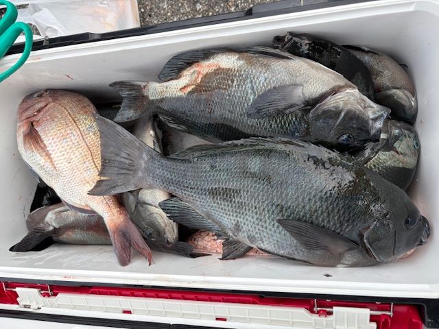 上物狙いは良型~中型グレやイサギ、マダイの釣果。