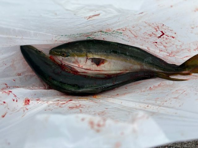 ルアーでハマチやカンパチ、オオモンハタの釣果。