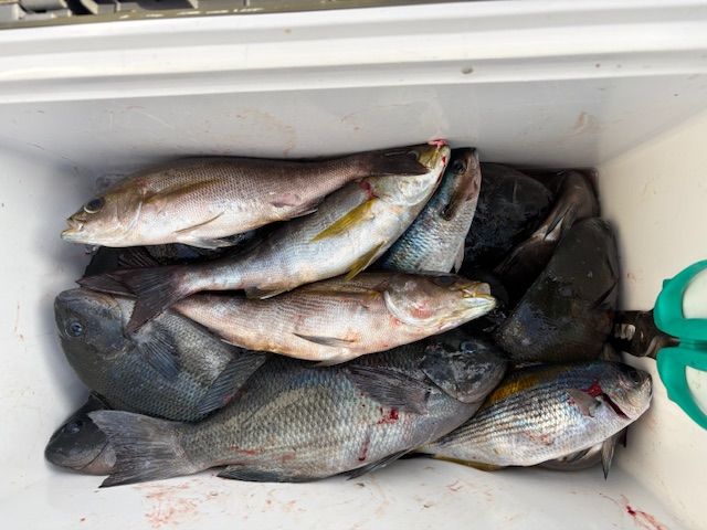 大型のグレや青物(シマアジ?)によるバラシ多発。