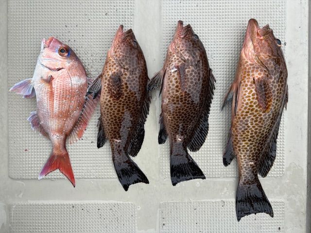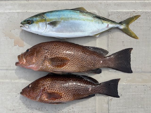ルアーでハマチやスマガツオ、アカハタにオオモンハタの釣果。