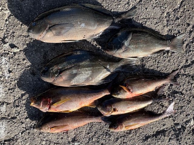 良型~中型のグレやイサギ、マダイなどの釣果。